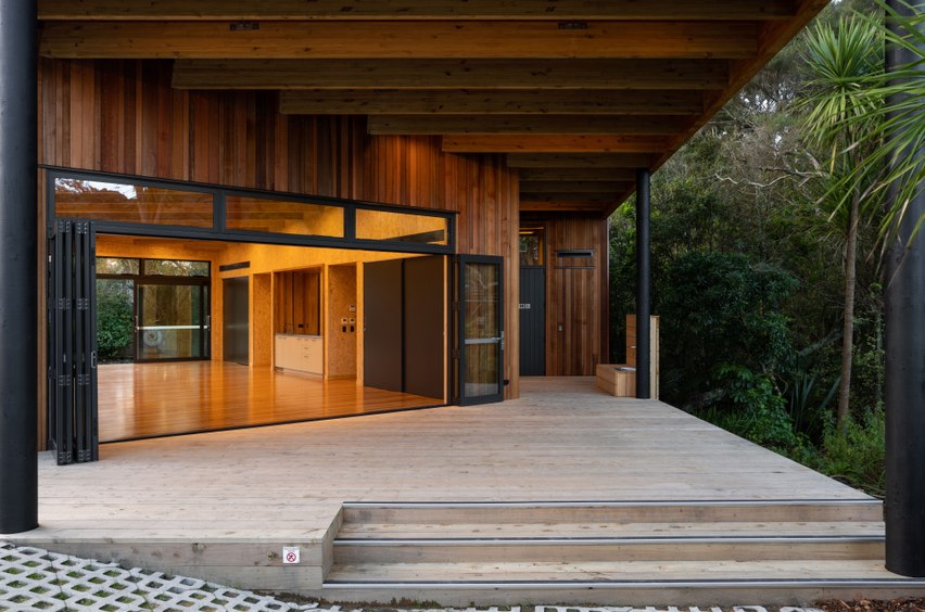 Leaning heavily on timber as a primary construction material – from foundations to superstructure to cladding – the new building is simultaneously large enough to accommodate the community’s goals of a bustling EcoHub of learning, and embodies a zero waste, green building ethos. To convert this ambition to reality, the Kaipātiki Project brought on several hard hitters in the industry, including Athfield Architects, Aspec Construction, and Techlam.